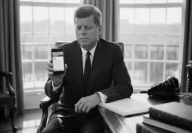 ▲ AI 生成的肯尼迪手持手机图像