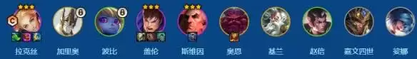 前排的最佳选择之一是盖伦。他拥有可观的生命值与护甲,能够在战线前端吸收大量伤害,为拉克丝创造完美的输出空间。尤其是在激活“德玛西亚之力”羁绊后,盖伦的坦度会得到质的飞跃。