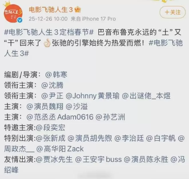 《飞驰人生3》观后 | 看的不是电影文 王继续从巴音布鲁克到沐尘100,中国电影从来没有过如此声势浩大的“沙尘暴式”的汽车拉力赛的宣传。虽然比赛是杜撰的。看完电影回家路上,媳妇都主动开始了“路书”: