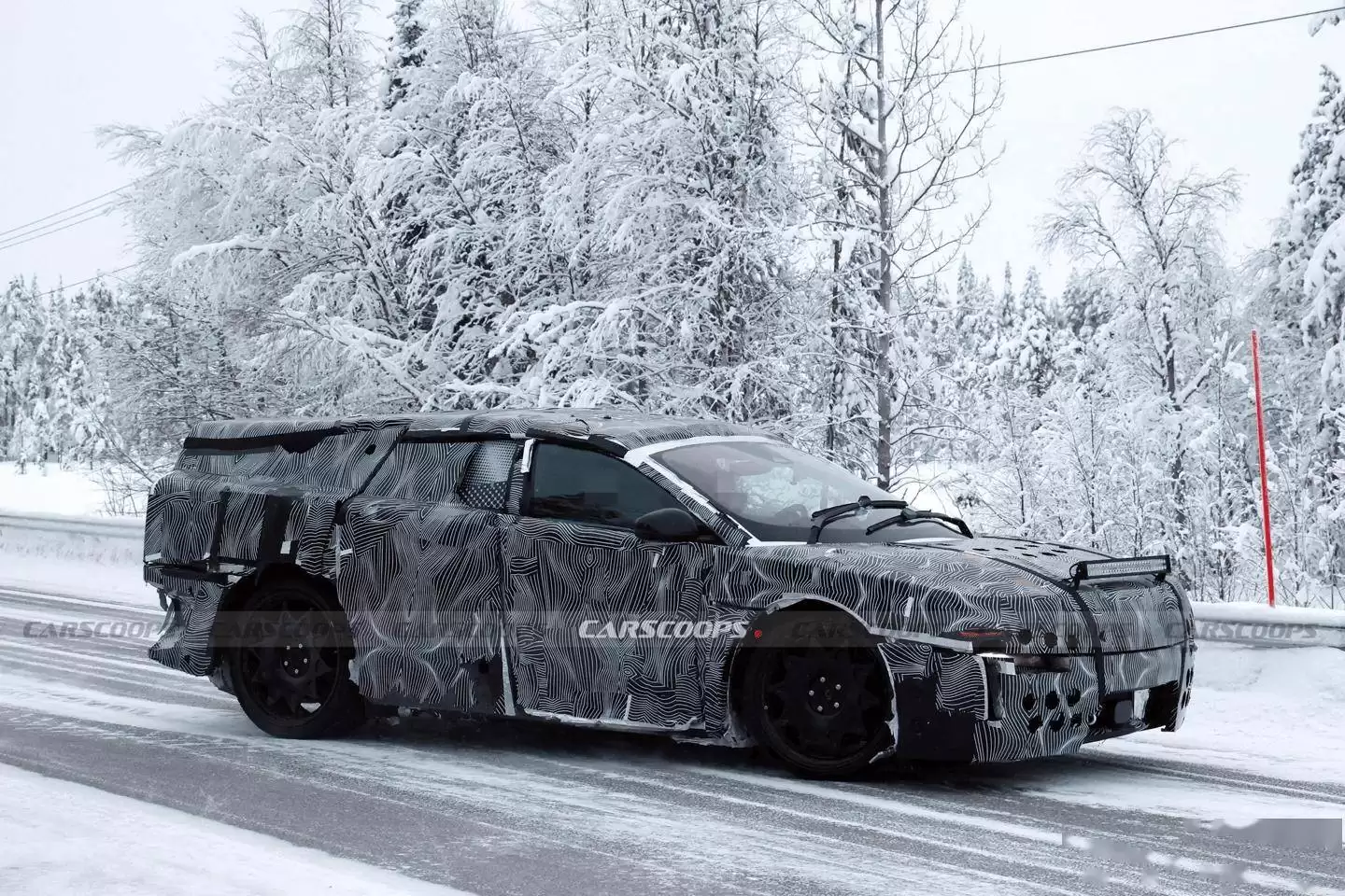 汽车媒体CarScoops日前曝光了一组在欧洲拍摄的测试车照片,主角正是法拉利旗下首款纯电动车型Luce的原型车。尽管测试车辆覆盖着厚重的伪装面板,但仍能看出其采用独特的对开门设计,侧面线条流畅且富有运动感。