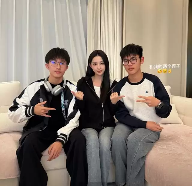 宣云还晒出了与两个侄子合影,拍照时宣云和两个侄子坐在一张浅色布艺沙发上,两个侄子坐在她左右两侧配合着宣云比出手势,显得活泼俏皮,而从侄子们长相来看都是很帅气的。
