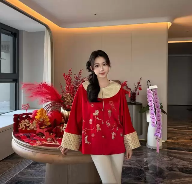 从宣云晒出的照片来看,她和潘玮柏是在上海豪宅过的春节。照片中,宣云身着一套极具节日氛围的红色中式套装,整体造型喜庆又不失雅致。