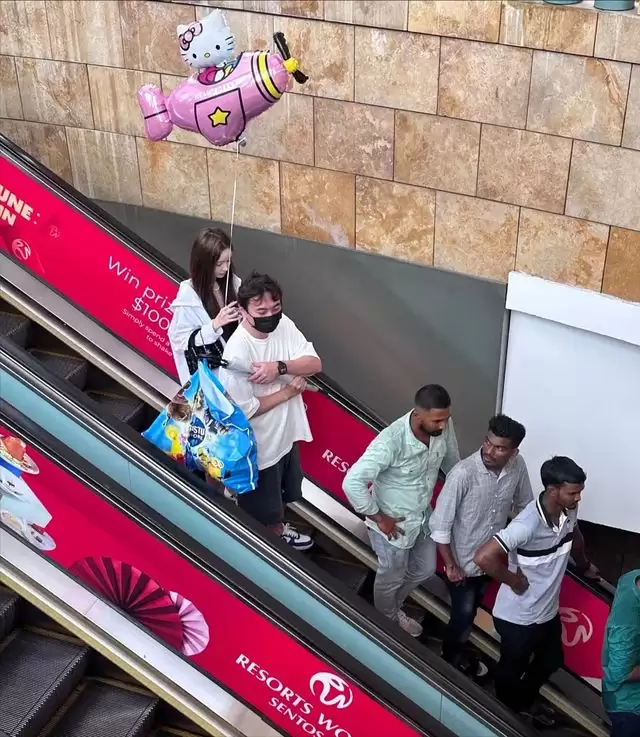 王思聪带女友新加坡过年,电梯合影前方外国人表情成亮点