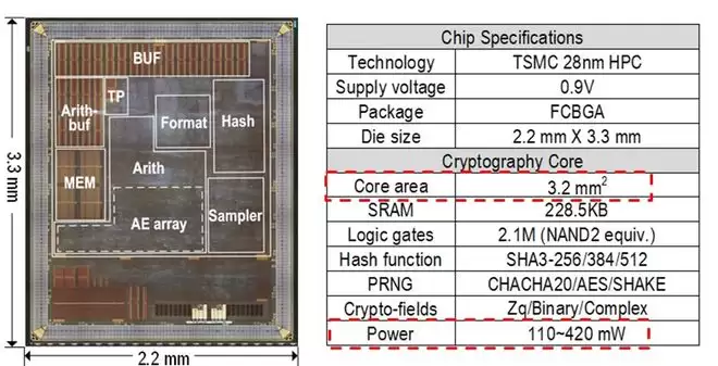 在可迁移抗量子密码芯片领域,2024年,沐创与清华大学刘雷波教授团队联合研发的业内首款可迁移抗量子密码芯片成果,再次入选ISSCC。该芯片采用28nm工艺,面积3.2mm²、工作频率500MHz,支持所有即将及新一轮标准化抗量子密码算法,其中Kyber-512算法吞吐性能达69.4k次/秒,密钥协商能耗仅4.4μJ,吞吐性能提升44.6%,有效解决抗量子密码迁移的灵活性与高效性难题。