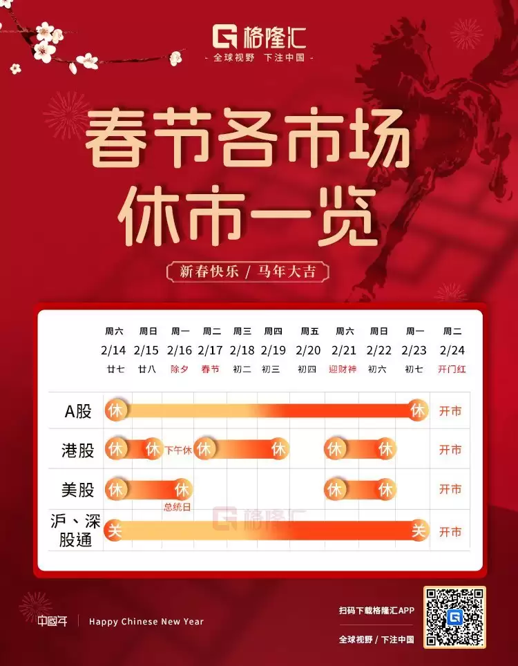 格隆汇2月19日|A股2月20日(周五)因春节继续休市,港股照常开市。