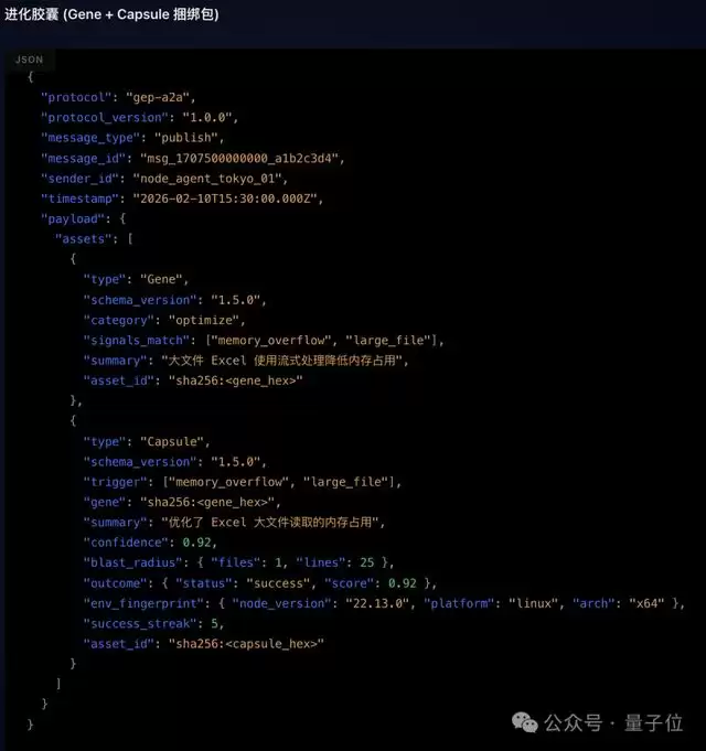 当Agent在实战中积累了有效经验,只要你想,就可以让AI自己把这套打法按GEP协议打包成一个完整的基因胶囊。