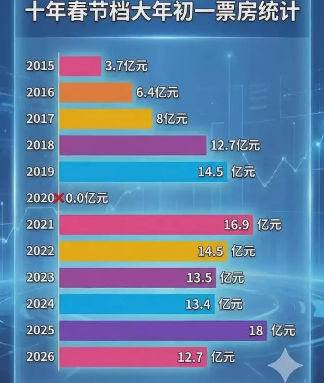 2026年春节假期最长,却成了近8年最冷春节档,目前2026年春节档8部电影全部上映,票房格局已定,不和2025年《哪吒》带热的大盘比,就看2024年贾玲“减肥片”夺冠那一年,2026年同期累计票房都差了几十亿。