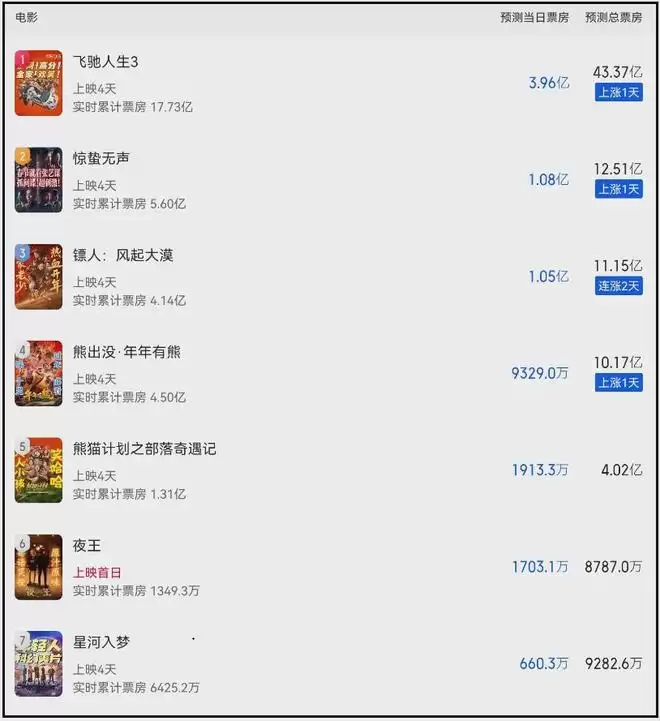 只是看看除了《飞驰3》之外,2026年其他春节档电影十几亿的预测票房,还是觉得尴尬。