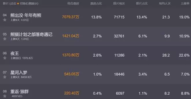 还有《熊出没》,票房守门员的熊设不倒,日票房比《熊出没》还低的春片子,就是被春节档淘汰出局了。