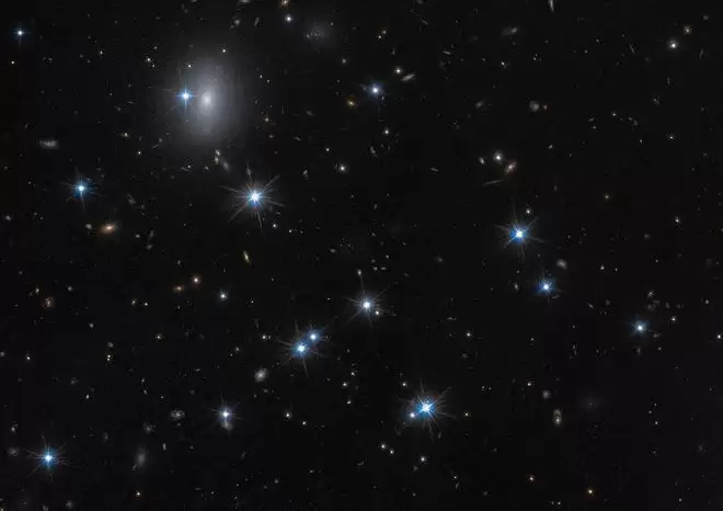 哈勃的高分辨率成像显示,在距离地球30亿光年之外的英仙座星系团中,存在着一个由四个球状星团组成的紧密集合。随后利用哈勃、欧几里得和斯巴鲁数据的后续研究,揭示了环绕这些星团的微弱、弥散的辉光——这是一个隐藏星系存在的有力证据。