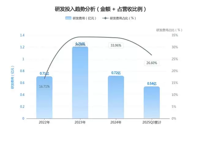2025年公司研发费用预计维持在0.72亿元左右,与2024年持平,但研发资源分配更聚焦核心战略,研发效率与成果转化能力显著提升。