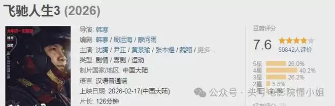 《飞驰人生》7.6分,《镖人》7.5分,《惊蛰无声》6.3分。