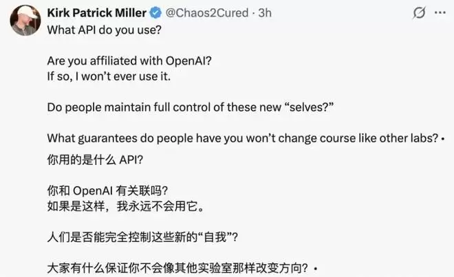 但也有网友担心,这样的 AI 是否会走向不可控?「人们是否能完全控制这些新的 『自我』?大家有什么保证你不会像其他实验室那样改变方向?」