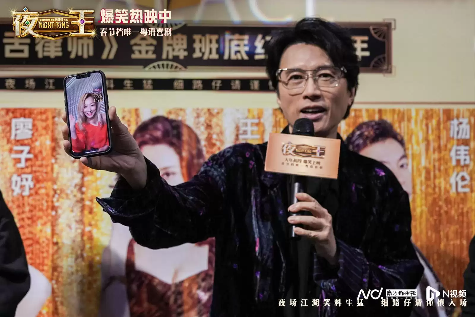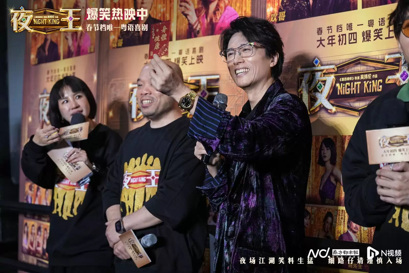 2月20日,由黄子华、郑秀文领衔主演的春节档唯一粤语喜剧《夜王》在广州进行路演,导演吴煊伦、领衔主演黄子华惊喜现身,领衔主演郑秀文也惊喜现场连线,与黄子华默契“售后”,爆梗频出炒热现场气氛,笑声阵阵点燃观众热情。