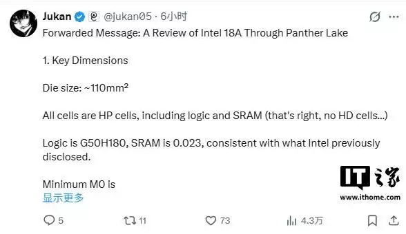 IT之家 2 月 21 日消息,分析师 @jukan05 今日转发了一份关于英特尔 Panther Lake 的深度技术分析报告,揭示了首款基于 Intel 18A 制程工艺的 CPU 产品的关键设
