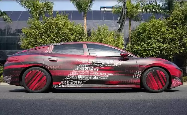 这款新车在设计上极具颠覆性。若将硬派SUV比作“方盒子”,那它便是流动的线条。尽管伪装严密,但仍能看出其独特的设计风格。新车采用极低趴的四门GT轿跑姿态,车顶线条从B柱后急速下滑,形成流畅的大溜背,搭配短前后悬、长轴距的车身比例,营造出蓄势待发的运动美感。细节方面,前机盖两侧隆起的两条筋线力量感十足,车尾不仅设计了小鸭尾式扰流板,下方还配备了造型夸张的扩散器,疑似还配有可升降扰流板,空气动力学设计堪称极致,有媒体称其为比亚迪体系内的“颜值担当”,彻底摆脱了现有轿车产品的设计框架。