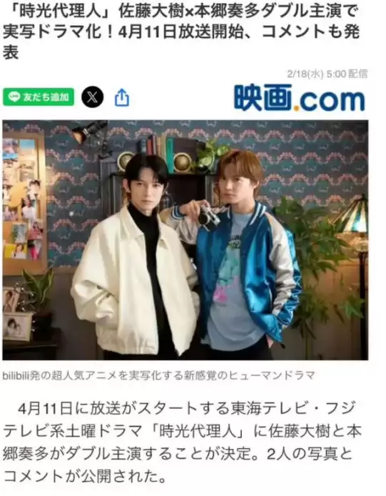 近日,备受瞩目的《时光代理人》真人日剧正式官宣定档,将于4月11日开播。作为小破站与霓虹富士电视台联手打造的首部国际共同制作地上波电视剧,这部改编自国产高口碑动画的作品,自筹备以来就牵动着无数动漫迷与剧迷的心,而双主演佐藤大树与本乡奏多的阵容公布后,更是引发了全网热议。