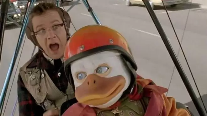 1986 年《天降神兵》主角是一只嘴贱的拟人化鸭子,要从黑暗霸主手里拯救世界。这部由乔治・卢卡斯参与的电影当年票房惨败,还拿下四项金酸莓奖:最差影片、最差剧本、最差新人、最差特效。但几十年后,它成了邪典经典。