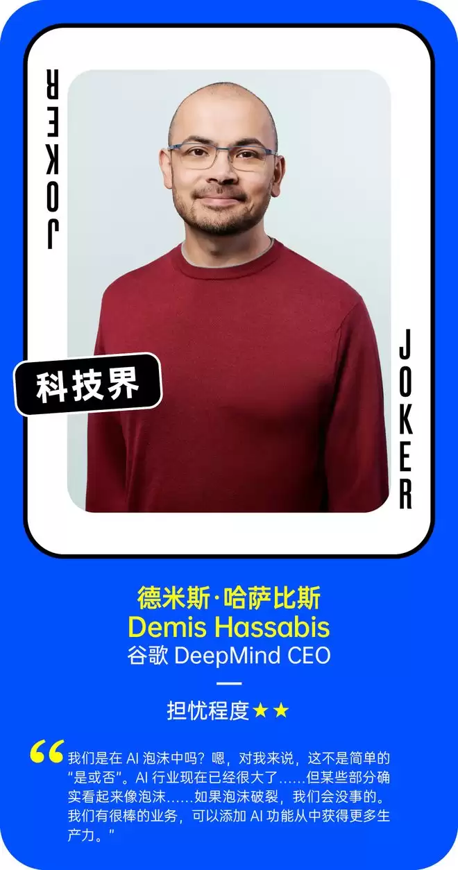 我们在此基础之上做了补充,引入了更多硅谷科技界的声音,以下是超过40位相关人士对“AI泡沫”的看法。