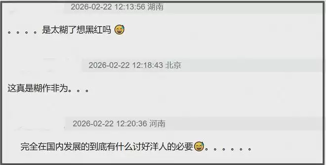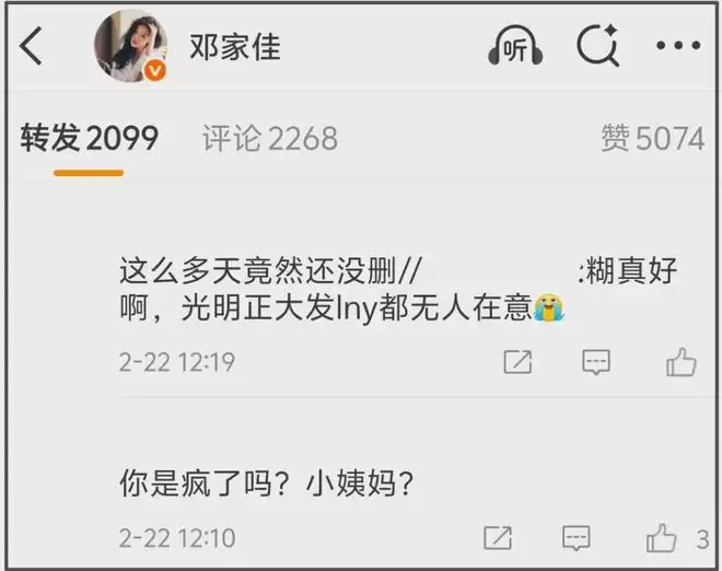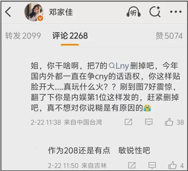 不止一位网友表示对邓家佳“路转黑”了,对她的行为很是无语,网友围观了一圈,发现邓家佳是2026年唯一一个公开发了“LNY”的中国明星,还是在我们自己的平台。