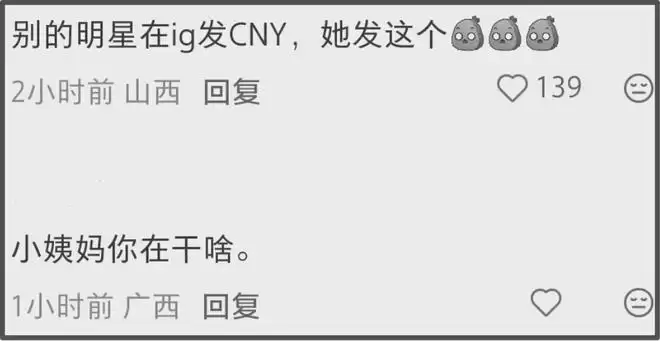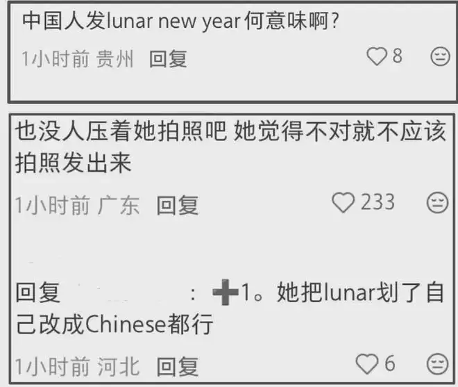——有网友发现,42岁女星邓家佳发布新年祝福的时候,明晃晃配上了一张带有“Lunar New Year”的照片,大年初一就发了出来,好几天过去了,哪怕有网友留言提出质疑,她还是没有第一时间删除。