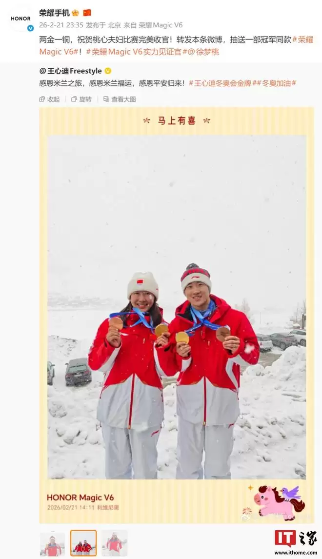 值得注意的是,自由式滑雪空中技巧世界冠军王心迪已率先使用荣耀Magic V6,并在社交平台晒出用该手机拍摄的照片。