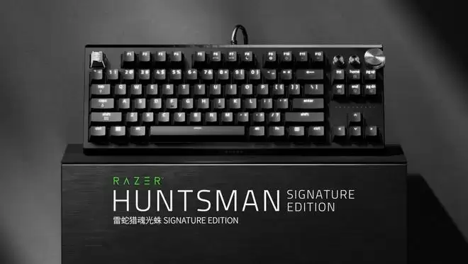 2月20日,雷蛇正式发布了Huntsman猎魂光蛛Signature Edition光轴键盘。这款旗舰新品沿袭了猎魂光蛛V3 Pro TKL专业竞技版8KHz的核心技术,同时在设计与工艺上进行了显著升级,以彰显其精密设计与匠心品质。它是雷蛇首款获得"Signature Edition"称号的键盘产品。