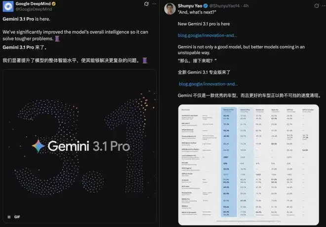 去年9月加入谷歌DeepMind的清华物理系传奇人物姚顺宇(Shunyu Yao)也发文官宣了新模型发布,并称“更好的Gemini模型正以势不可挡的速度涌现”。