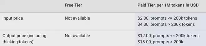 Gemini 3.1 Pro预览版的API价格采用分级计费模式,与上一代Gemini 3 Pro预览版保持一致,提示词在20万token以内,每百万token输入价格2美元(约合人民币14元),输出价格12美元(约合人民币83元),提示词超过20万token,每百万token输入价格4美元(约合人民币28元),输出价格18美元(约合人民币124元)。