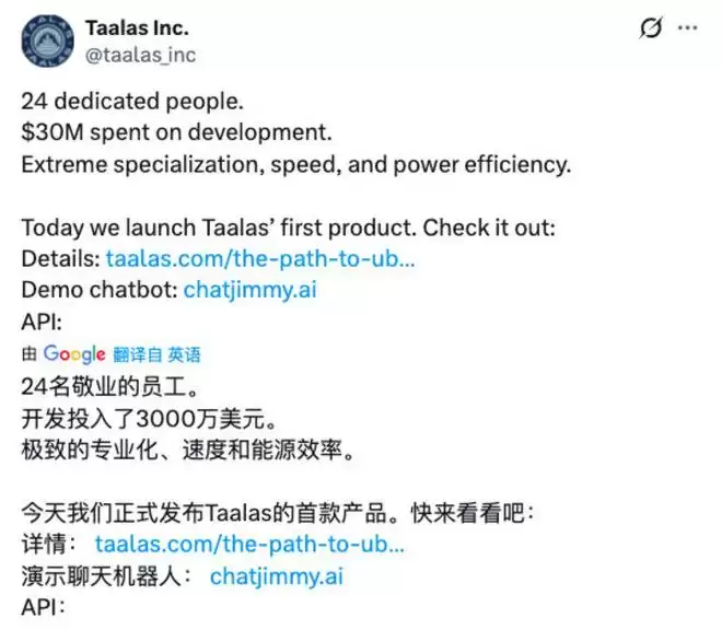 2024年,Taalas公司完成5000万美元的首轮融资,并正式出现在公众视野。