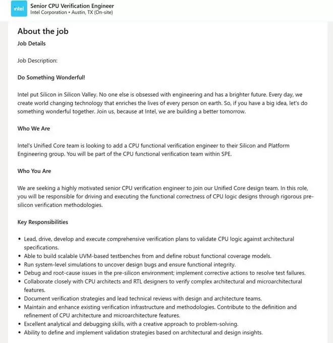 2月23日,IT之家报道,英特尔日前在职业社交平台发布的一则招聘启事显示,公司正在组建一支名为“统一核心”(Unified Core)的研发团队,其核心使命是打造下一代CPU的崭新微架构。