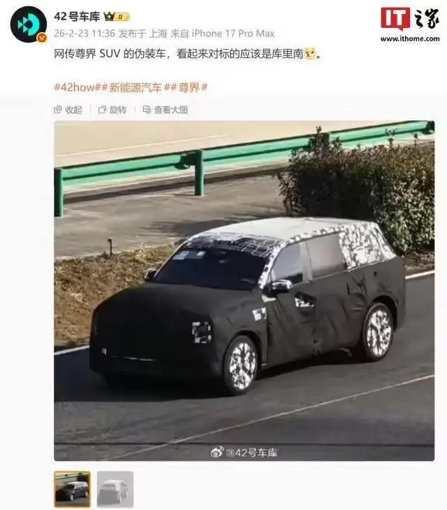 鸿蒙智行尊界SUV伪装照曝光:方正轮廓配家族大灯,或对标库里南