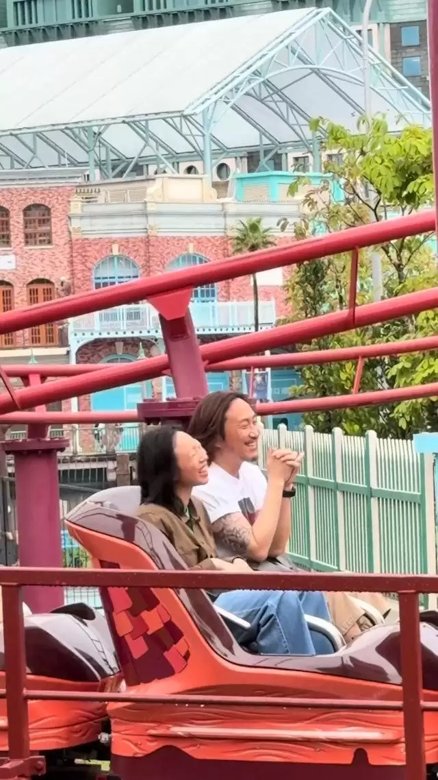 郑中基和该女友一起公开露面现身,紧接着一起在游乐场里开心玩乐。