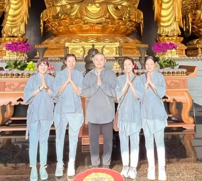 信奉佛教的她在除夕夜和黄心美、前主播郑文、卫志豪等人一起现身香港的慈山寺祈福。