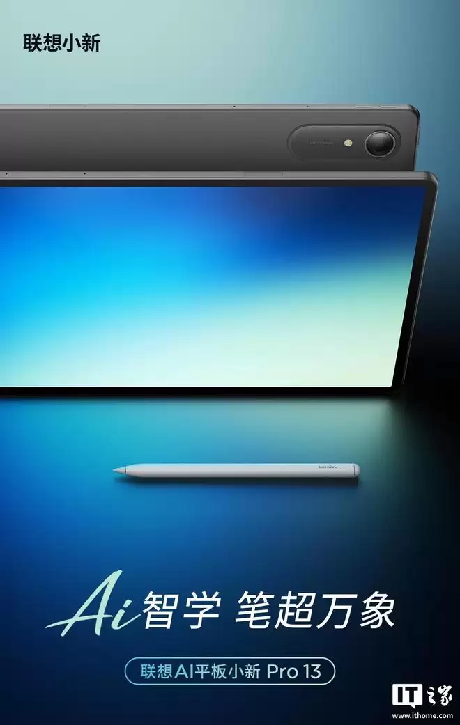 参考IT之家此前报道,本月早些时候,联想小新已官宣一款平板新品——联想AI平板小新Pro 13。预热海报显示,该平板采用四等窄边设计,前置摄像头隐藏于边框之中,后置单摄,并配有手写笔配件。该产品以“AI智学,笔超万象”为宣传口号,预计将于3月正式亮相。