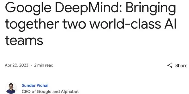 2024年4月20日,劈柴哥(谷歌CEO Sundar Pichai)宣布,将Google Research的Brain团队和DeepMind两支团队整合为Google DeepMind,由Hassabis统一领导。