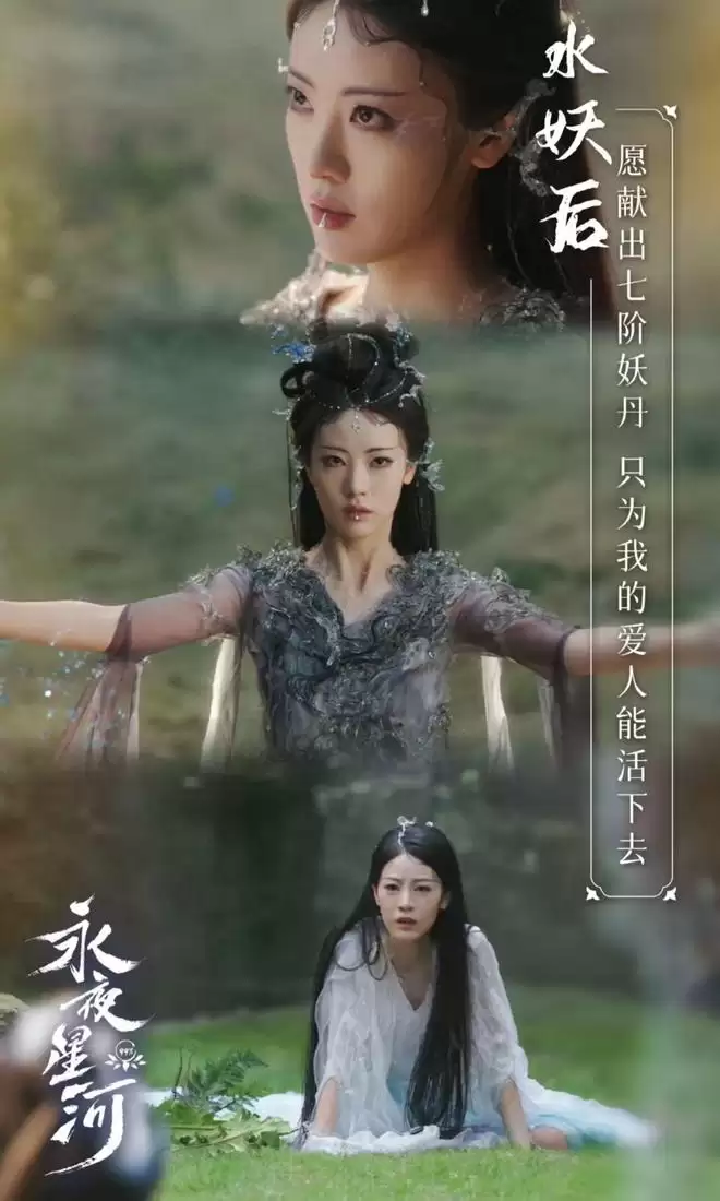 水妖后与丈夫水妖王本是山中无忧无虑的妖,因人类捉妖而被迫黑化。为了救丈夫,水妖后甘愿献出内丹,展现了凄美破碎感与为爱牺牲的深情。