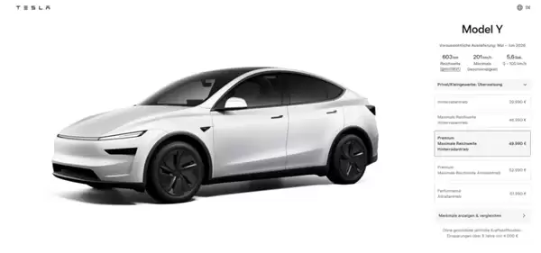 据悉,新车预计交付时间为2026年5月至6月,目前特斯拉欧洲正式已更新该车型的相关售价与参数信息。