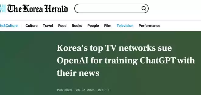 韩国三大媒体起诉OpenAI:指控未经授权使用新闻数据训练AI