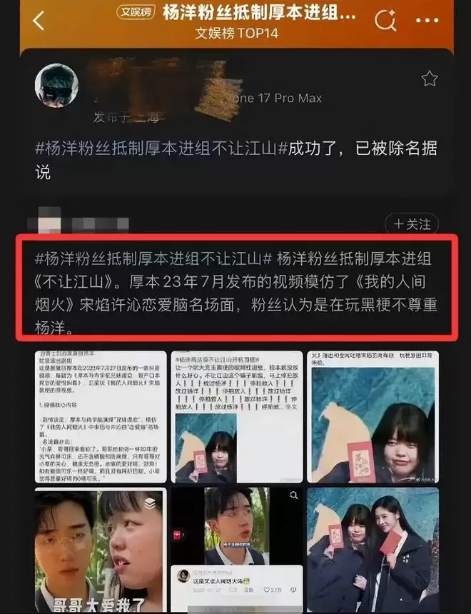 另外还有消息称网红厚本也会入组,这个厚本和杨洋粉丝可是有恩怨的,当初《人间烟火》全网嘲,厚本还特意模仿恶搞杨洋在剧中的争议片段,结果现在居然进组和杨洋一起搭戏,这让杨洋粉丝怎么接受。