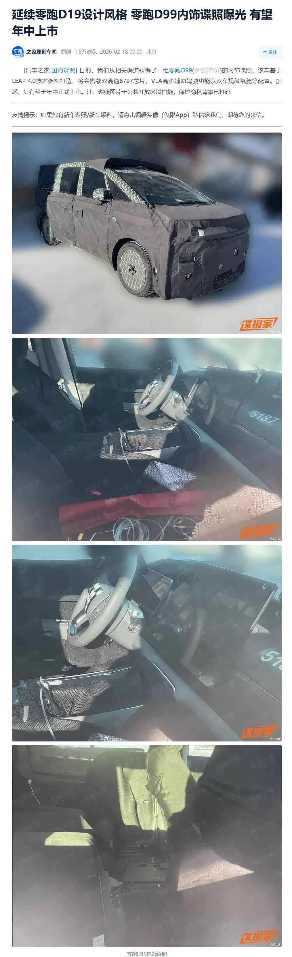 零跑D99内饰谍照曝光:科技豪华配置拉满,预计2025年底亮相