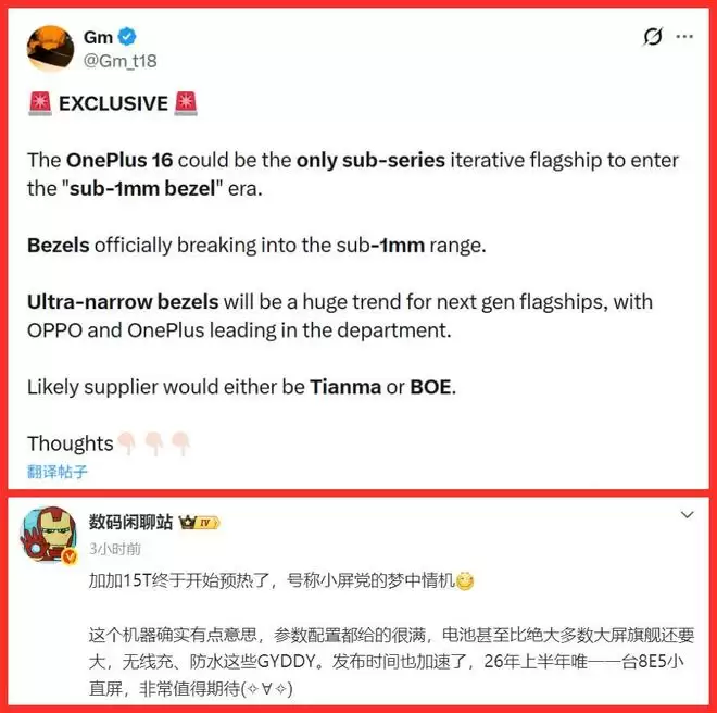 和一加15T主打小屏不同,一加16的提升幅度也很明显,虽然发布时间要等到2026年第四季度,但从现在曝光的配置来看,确实值得等。