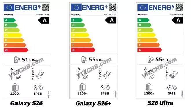 而作为阵容中的顶级旗舰,Galaxy S26 Ultra 则配备了全系最大的 4855mAh 额定容量电池,其预期续航时间同样达到了 55 小时。