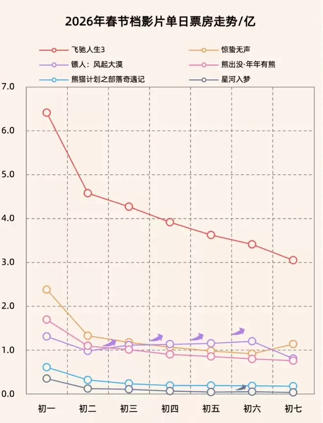 春节档票房各片票房走势(图源:灯塔专业版)