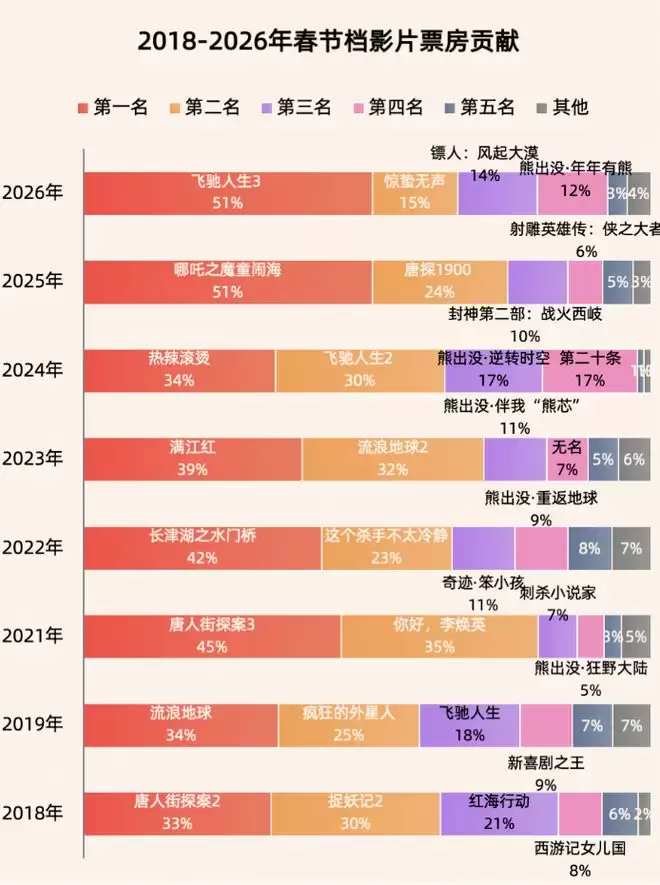 历年春节档票房占比(图源:灯塔专业版)