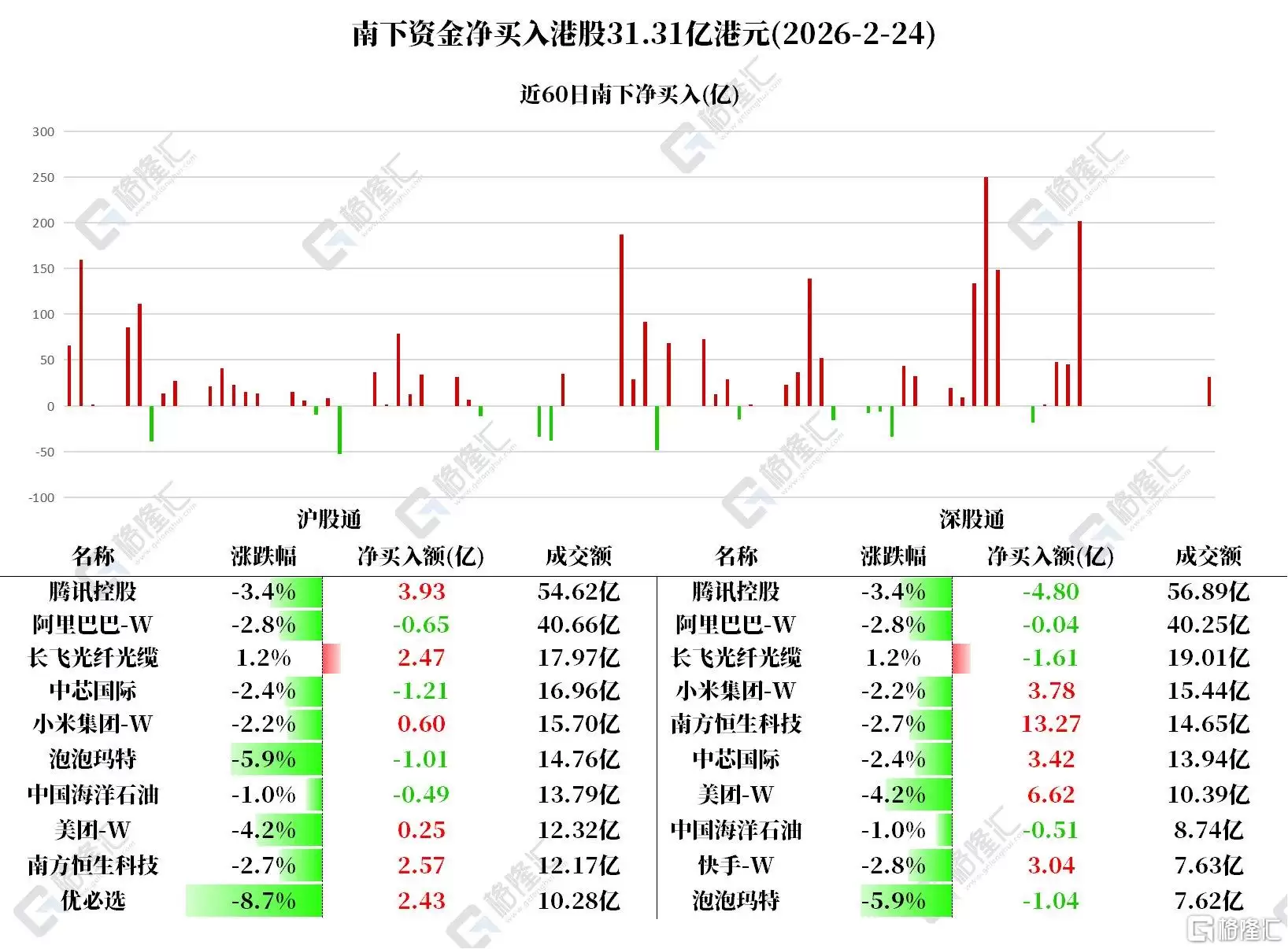 今日南下资金在港股市场净买入31.31亿港元。