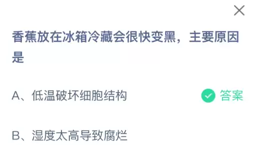 把香蕉放进冰箱冷藏,没几天就变黑了,这背后主要的原因是什么呢?支付宝小鸡课堂的趣味问答又开课啦!每天只需花一分钟参与答题,既能为小鸡赚取口粮,又能奉献一份爱心。轻轻松松,意义十足!2026年2月25日蚂蚁庄园今日题目“香蕉放在冰箱冷藏会很快变黑,主要原因是?”的正确答案是【低温破坏细胞结构】。没错,香蕉放进冰箱后表皮快速变黑的“元凶”,正是低温破坏了其细胞结构。