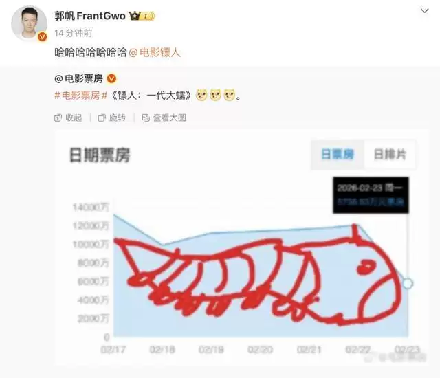 眼看着《镖人》靠自来水把票房一点点逆袭上来,网友给片子起了个外号叫 “ 一代大蠕 ” ,主创也开开心心接住了。就像当年 “ 小破球 ” 一样,有了自来水的 “ 一代大蠕 ” ,也会这么慢慢蠕动向前。