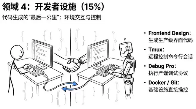 Next.js Expert、React Expert 等技能强制执行最佳实践;Docker、Git、tmux 等基础设施控制让 Agent 能直接操作底层环境;Frontend Design、Shadcn UI 等则面向「生成即用」的现代前端工作流。