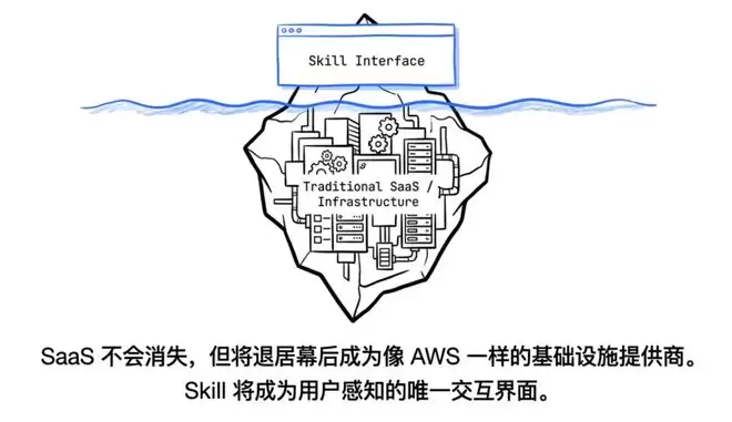 未来的 SaaS 可能更像「基础设施提供商」,提供 API 和底层能力,而 Skill 开发者负责把这些能力封装成用户友好的交互方式。